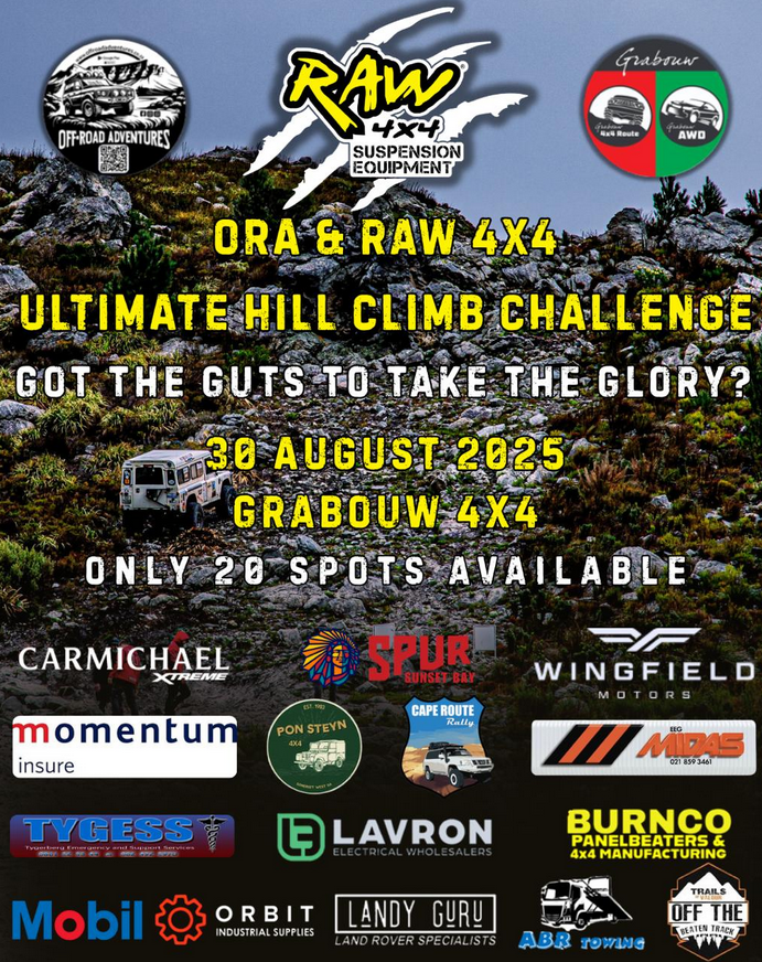 Date: Saturday, 30 August 2025Venue: Grabouw 4×4Contact: 076 654 9381 | offroadadventuresza@gmail.com Off Road Adventures and Grabouw 4×4 proudly present