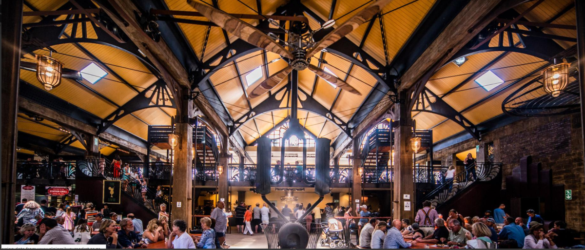 The Elgin Railway Market is within an old apple warehouse converted into a bustling Steampunk, Art Deco market boasting local food and craft vendors, live music and is the gateway to the beautiful Elgin Valley. The original building was built in the 1940’s by Italian POW’s. The concrete tapered columns and curved box gutters bear testimony to the skill of those craftsmen. It has been extensively renovated and is a must visit. The Ceres Rail company with 80 year old steam trains, operate a weekend return trip from Cape Town. Welcome the train as it arrives puffing, hooting and whistling! *** Food vendors purvey everything from fragrant curries, Mediterranean cuisine, healthy salads, spicy chicken, pizzas, ribs, burgers, exotic Dim Sum, delicious fresh juices, biltong, and fresh Thai, to stalls offering Strictly Halaal, Vegan and Gluten friree options. Sweets treats are abundant, including home-made fudge, ice-cream, handmade chocolate, and to finish off, a great selection of cakes. The bar serves local wines, beer and cider.  Local craft gins can be found at LGin. Steam Coffee serves home ground brews whilst the wine shop, stocks excellent Elgin and Bot River wines. A variety of retail offerings can be found on the mezzanine and ground floors with exceptional jewellery, genuine leather goods, vellies in abundance, CBD oils and edibles, Himalayan salts and lamps, kids toys and clothes, ladies apparel and skin care, men’s gifting and grooming, braai tools and equipment, and then a rummage in the salvage shop. Find sought after fans, benches and rocket stove fireplaces made from stylish wood and steel.